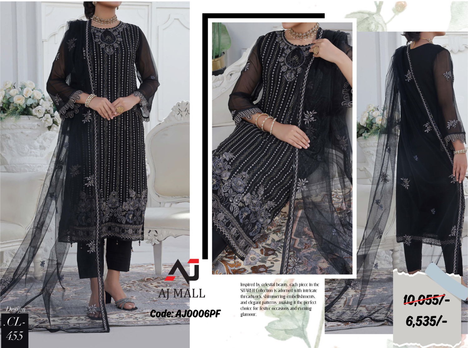 PAK FABRICS-SITAREH Luxury Embroidered Chiffon Collection Festive / AJ0005PF